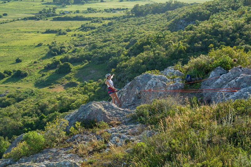 Y una vez arriba, sobre el borde de la pared de piedra, es donde la aventura se pone realmente desafiante. Una vez puestos todos los implementos de seguridad necesarios, da un paso hacia atrás y comienza el descenso. “Es impresionante porque vos misma vas largando cuerda y controlás cuánto querés ir cayendo”.