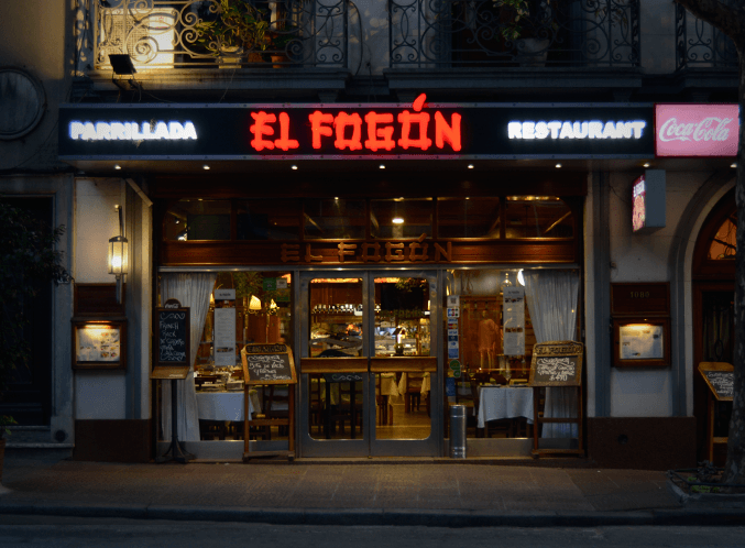 El Fogón es una de las parrilladas más tradicionales de Montevideo. Fue fundada hace casi 60 años en pleno centro de la ciudad, en el local de lo que antes había sido una fábrica de muebles. Precisamente por sus dimensiones, tiene capacidad para más de 250 comensales sentados en las mesas de sus dos salones de planta baja, uno en planta alta y otro en el subsuelo, donde también está ubicada la cava. Además de tener una de las mejores propuestas de carne de Montevideo, aquí también pueden degustarse otro platos que son muy tradicionales en la cocina uruguaya pero que no son tan fáciles de encontrar en otros restaurantes. Por ejemplo, matambre a la leche o cazuela de mondongo, o postres el como arroz con leche.