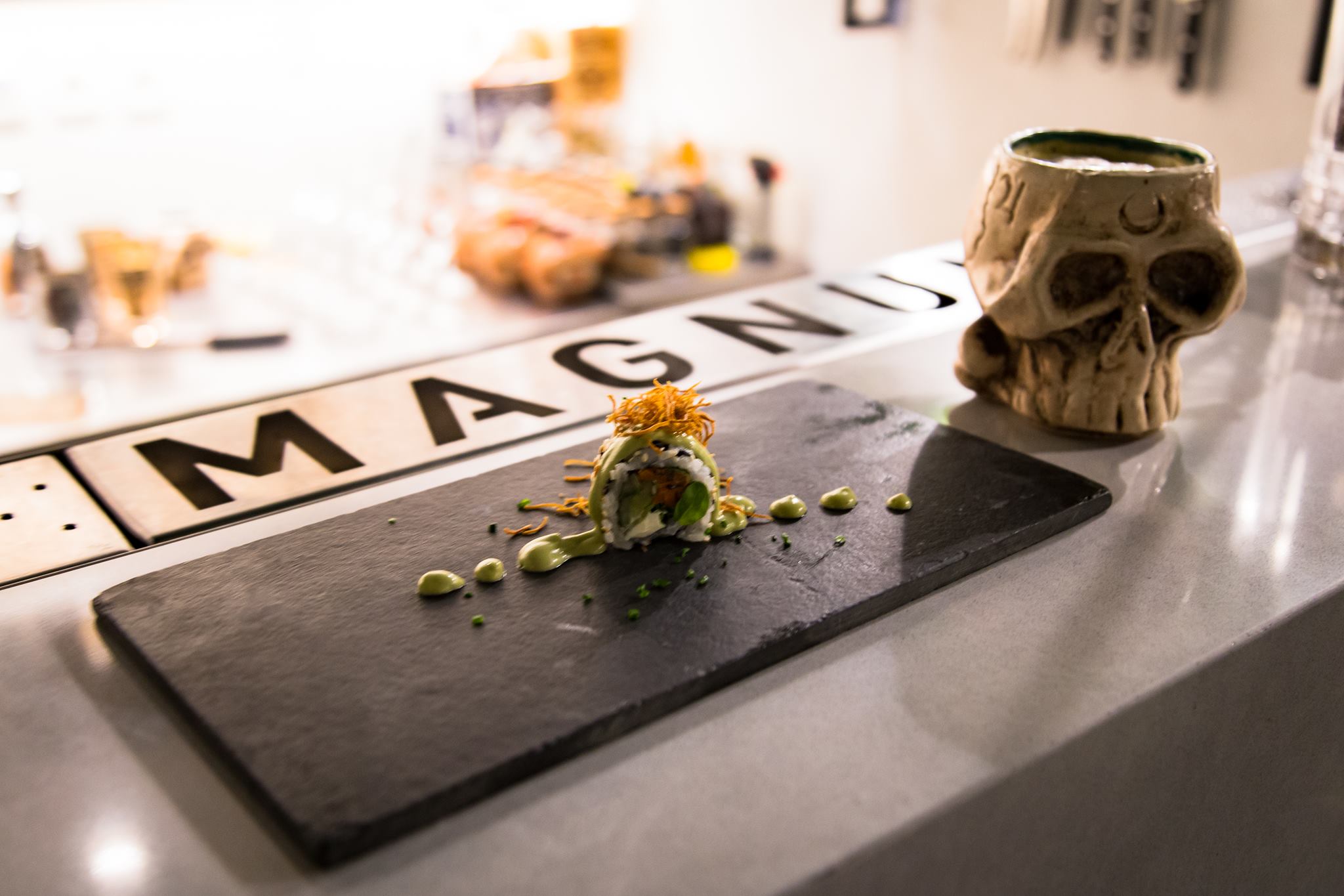 La propuesta de Magnum va por dos carriles muy distintos, aunque a la vez muy complementarios: sushi nikkei y hamburguesas caseras. Sus fundadores han explicado que esa fusión tiene que ver con la preferencia de los clientes y la búsqueda por captar un público más amplio. Para el que no le guste la cocina japonesa, las hamburguesas siempre son una buena salida. En cualquier caso, Magnum se ha instalado como uno de los espacios favoritos de los montevideanos que buscan sushi en la ciudad. Los preferidos de Eli en Magnum son “el ceviche y los tiraditos”.