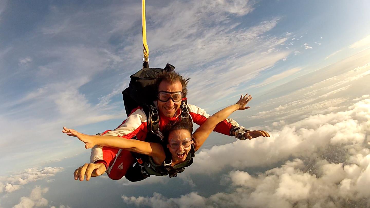 Una caída libre de unos 50 segundos a 3.000 metros (9.850 pies) de altura y a 250 km/h (155 mi/h). Pocas actividades te llenarán tanto el cuerpo de adrenalina como el paracaidismo. Subir en avioneta hasta donde te lanzarás al vacío amarrado a un instructor, lleva unos 20 a 30 minutos, aproximadamente. Tiempo suficiente para que el paracaidista inexperto vaya preparándose para una de las experiencias más impresionantes de su vida. Una mezcla de emoción y miedo te envuelven. Mientras, te preguntas en qué momento de locura decidiste que esta era una buena idea.